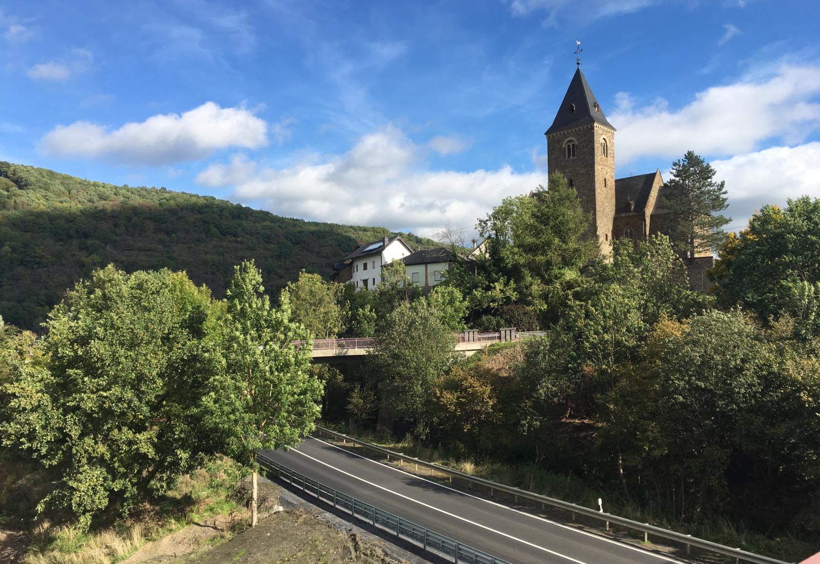 Den höchsten Punkt der Tour habe ich in Boxberg, 12km vor Daun erreicht. Mit 565m nicht besonders bemerkenswert, aber hoch und runter sollte es noch sehr viel gehen. Zunächst ging es über alte Bahntrassen und Viadukte in Richtung Trier. Den schönen Teil des Moseltals habe ich so leider ausgelassen, da ließe sich die Route noch verbessern (wie an einigen Stellen).