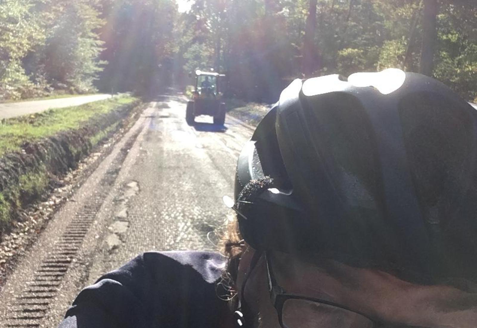 Auf der Höhe zum Johanniskreuz hatte ich die große Straße, die gerade erneuert wird ganz für mich allein. Da habe ich nochmal Gas gegeben und bin dem Baustellenfahrzeug entwischt. Der restliche Weg nach Kaiserslautern war leider wieder viel befahren. Ich war froh als ich nochmal kurz einen kleinen Trail neben der Straße entdeckt habe.