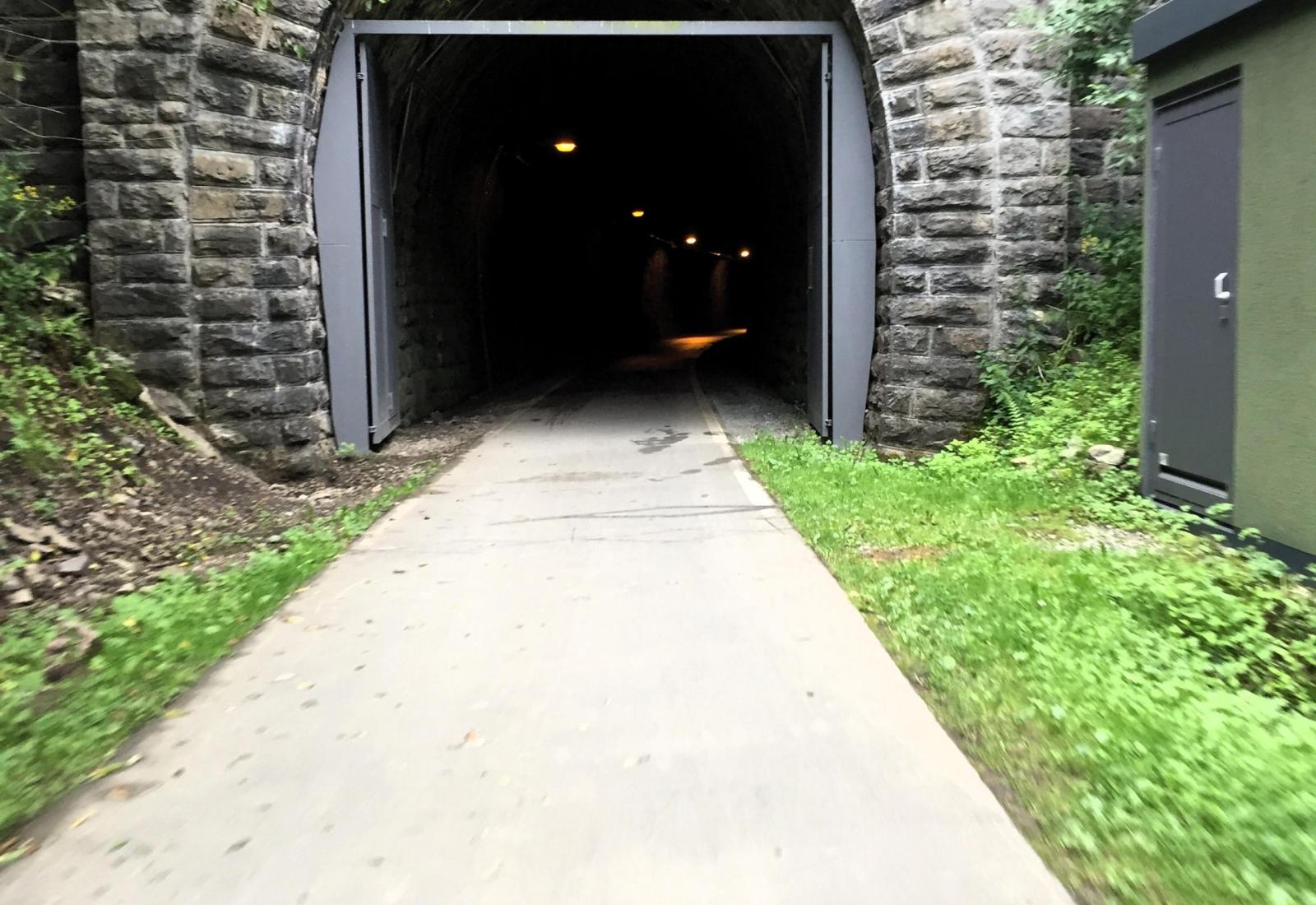 Belohnt wurde ich bis Eslohe mit einer stillgelegten Bahntrasse, die nun als 1a Radweg dient. Inklusive alter Loks und Wagons und dem 700 m langen Fledermaustunnel. Kurz danach kehrte ich in Bremke im Imbiss „Boxenstopp“ ein und gönnte mir eine Currywurst Pommes. Die war echt gut, allerdings nur bis ich wieder auf dem Rad saß. Dann bereute ich den „Snack“ noch sehr lange, denn Sportlernahrung ist das nicht.