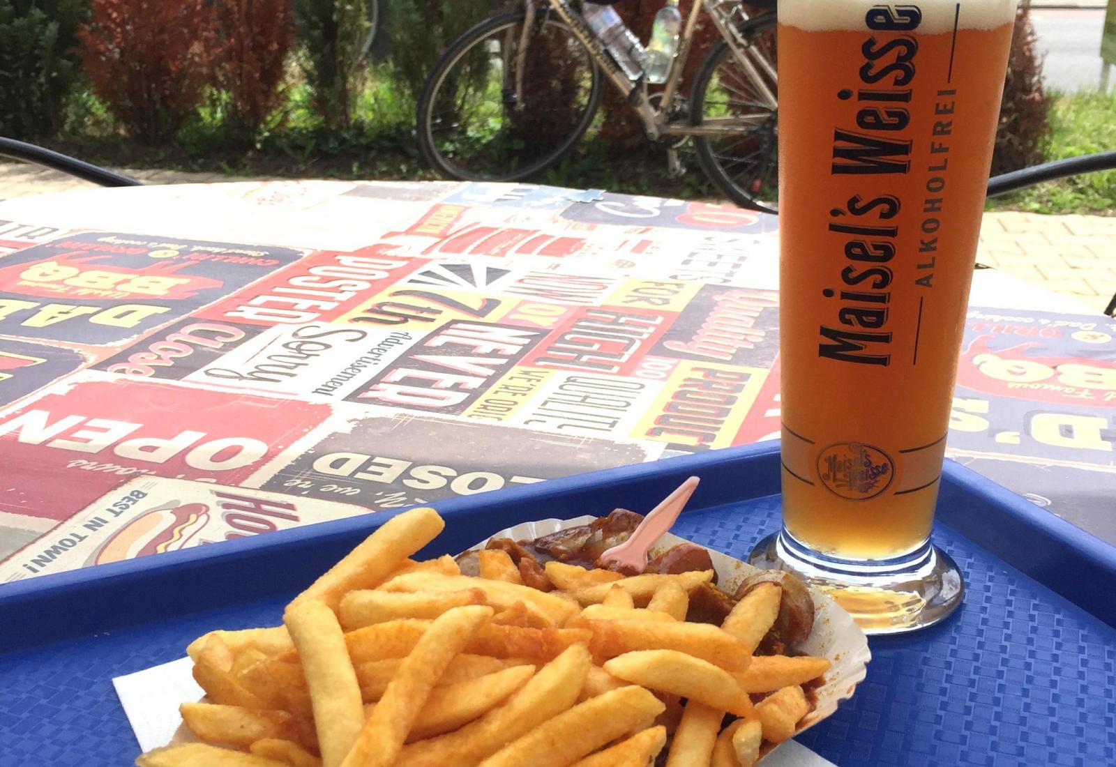 Verpflegung: Außer der Curryuwurst Pommes, die ich dann ja noch bereut habe, habe ich unterwegs nur Bananen und Müsliriegel gegessen. Am Morgen ein reichhaltiges Müsli und abends noch eine warme Mahlzeit. Der Hunger kam dann eher am nächsten Tag. Wenn der Körper dran gewöhnt ist, kann er schon eine erstaunliche Vorratshaltung betreiben.