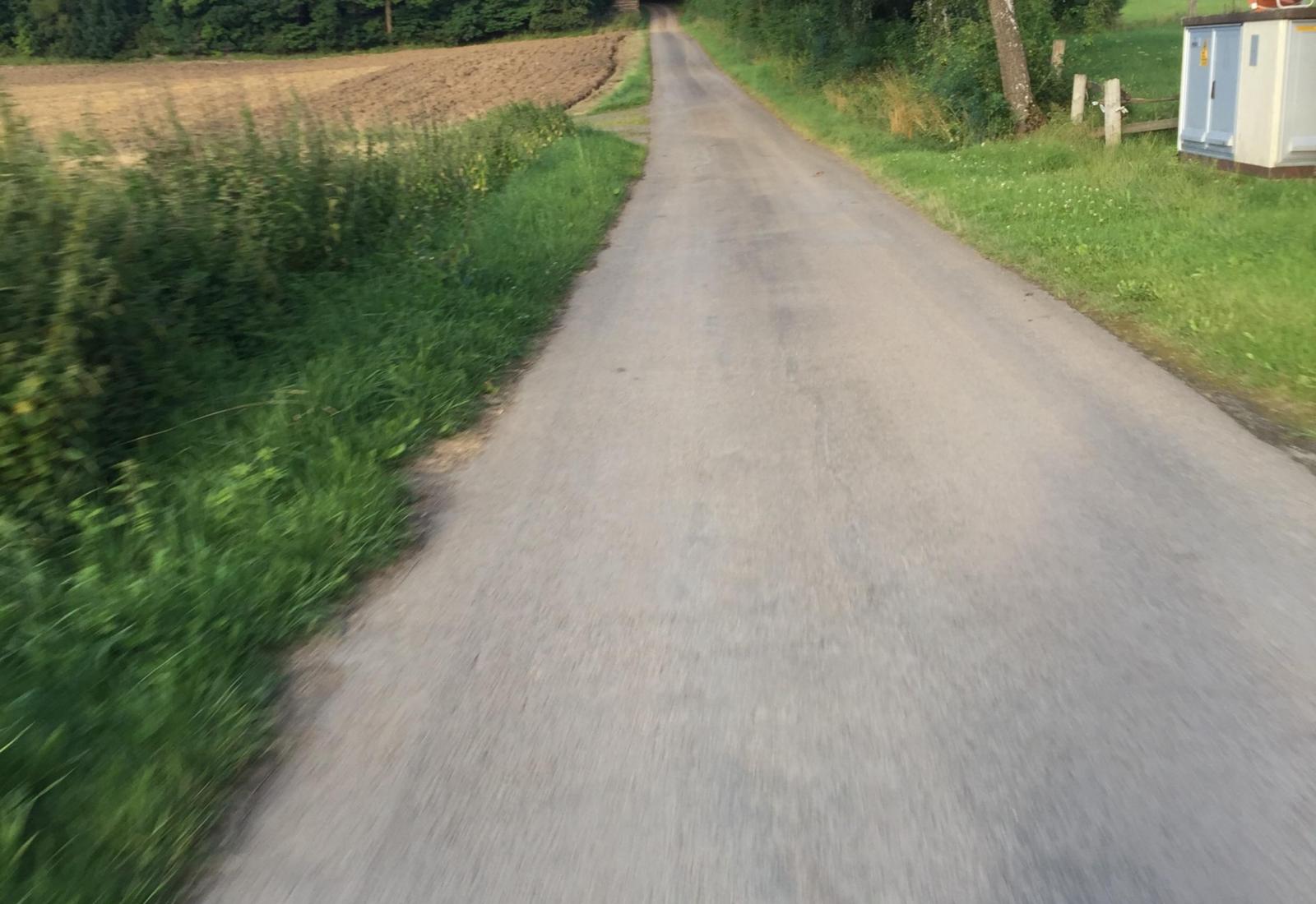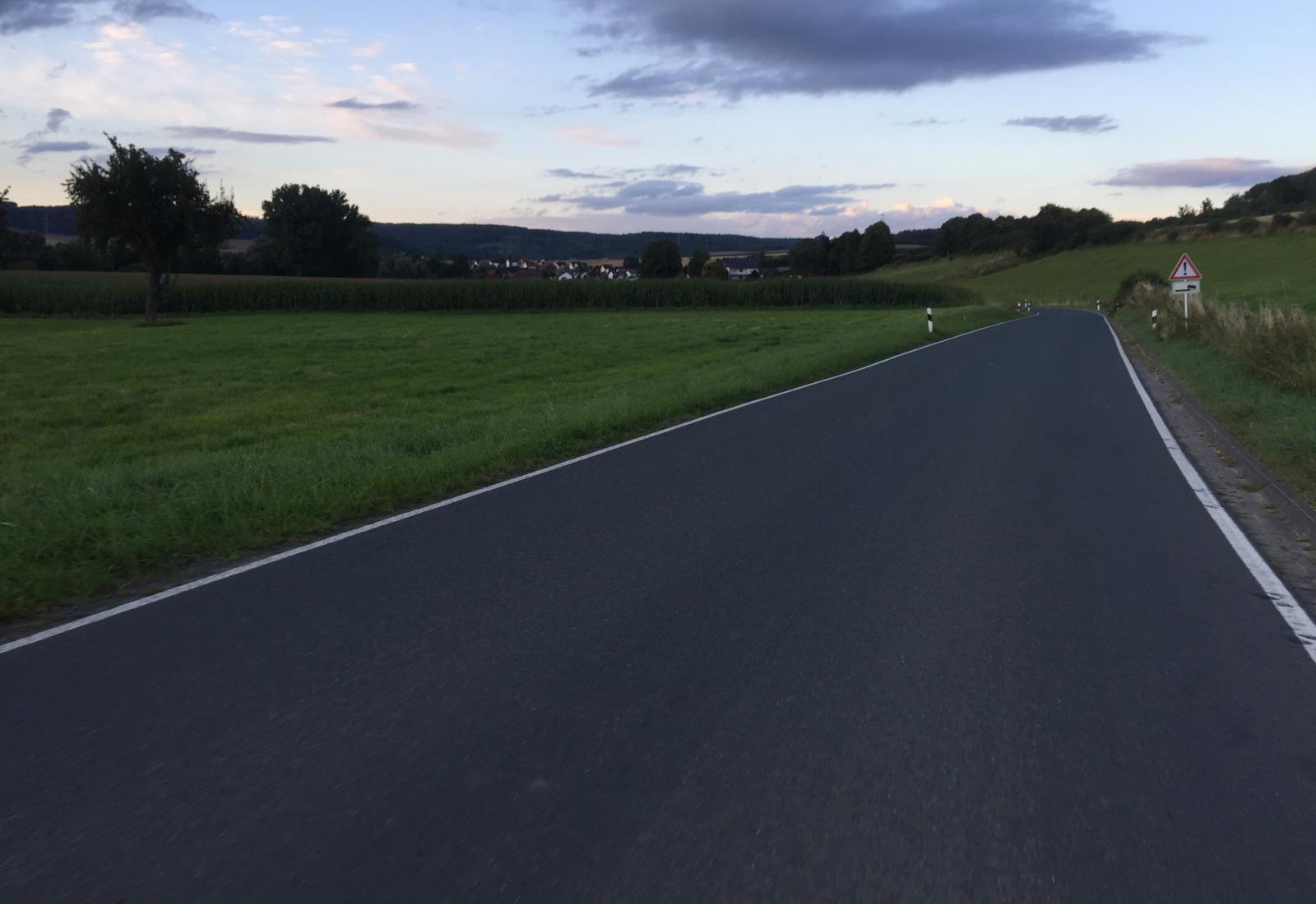 In Scherfede war ich dann tatsächlich in Ostwestfalen angekommen und die letzten 30 km sollten nun auch noch machbar sein. Autos fahren in der Region scheinbar Samstags-abends nicht mehr, jedenfalls verging viel Zeit ohne, dass ich ein einziges sah. Das machte die „Zieleinfahrt“ umso angenehmer.